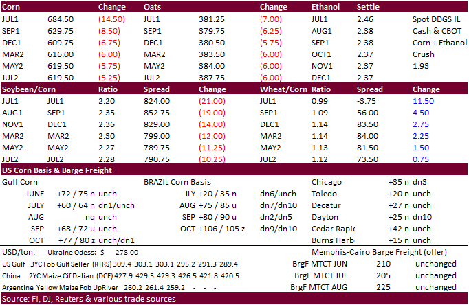 was the last day of the Goldman Roll and July corn fell 14.50 cents while September was down 8.50 cents.