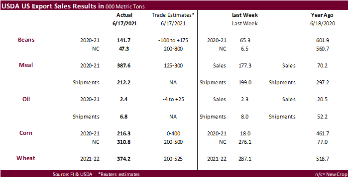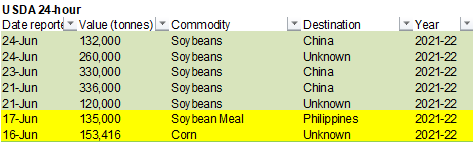 June 24, 2021—Private exporters reported to the U.S. Department of Agriculture the follow activity: