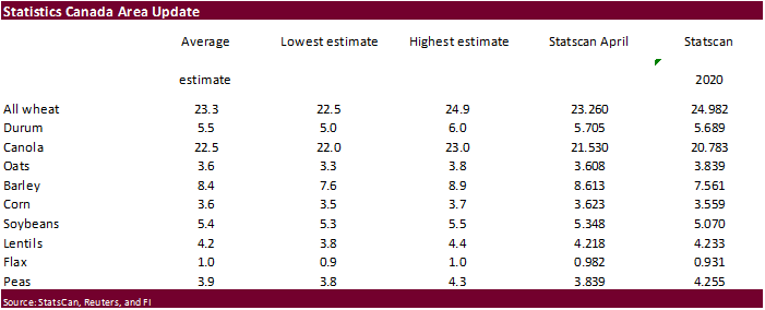 and lowered spring wheat. These estimates are what we think USDA will report next month.
