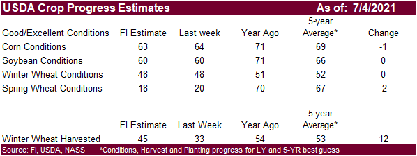 think USDA will report winter wheat conditions unchanged when updated Tuesday.