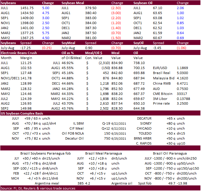 soybeans were up 3.50 cents, August meal down $1.90, and August soybean oil up 82 points. Volatility remains high.