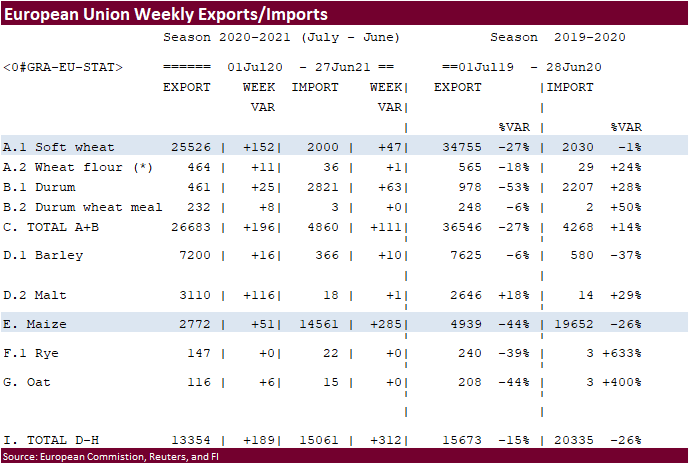 retendered for 120,000 tons of feed barley set to close July 7 for Nov/Dec 2021 shipment.