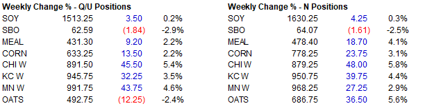 were heavy sellers for the week ending July 5 in corn, good sellers in soybeans, but were much lighter sellers for Chicago wheat. The funds position was less long for corn, but traders missed soybeans and to a much higher extent the Chicago wheat market. Indexes