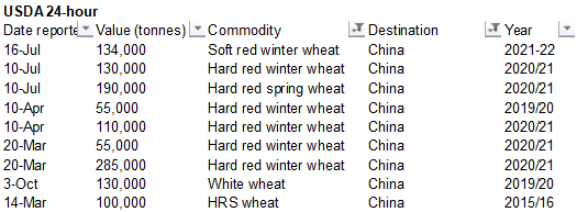 USDA announcement system, exporters sold 134,000 tons of soft red winter wheat to China.