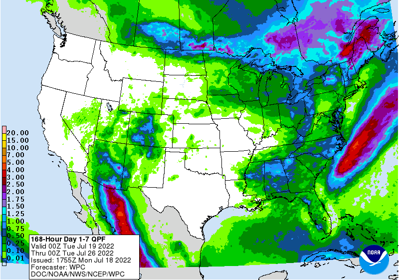 central and southern Plains, Delta and southeastern states may see a boost in rainfall this weekend and next week as the ridge of high pressure shifts to the west allowing a couple of frontal systems to come into these areas generating some rain - The