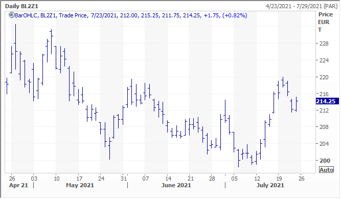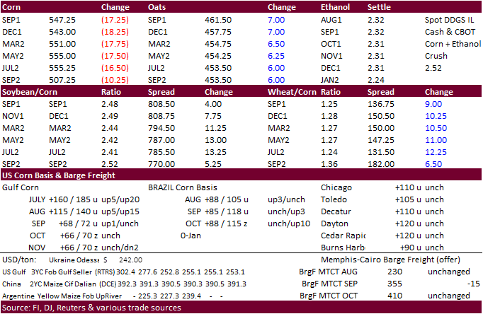 September corn contract traded through a couple key MA’s, included the 100-day at $5.5350. Major support is seen at $5.00, but we think it will be hard for that contract to trade below $5.20 as US inventories are seen tight.