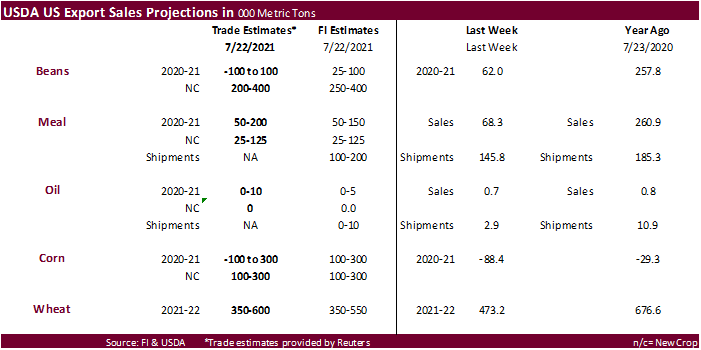the pig crop. Note China has not tendered for US corn since May and this morning we heard they were inquiring for US corn, but nothing materialized as of late Wednesday afternoon. Separately, China’s cabinet announced emergency adjustments of its pork reserves