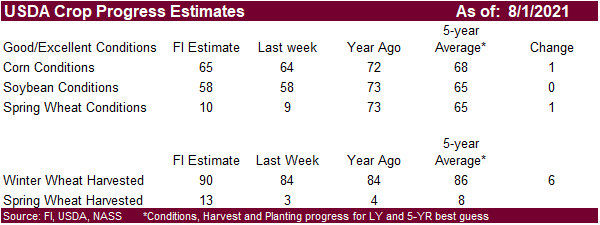 of U.S. corn crop is experiencing moderate to severe drought, unchanged from last week.