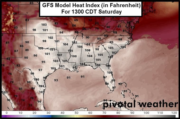 high humidity is expected in the Delta and southeastern states inducing extreme heat indices which could threaten livestock and human health - Relief
