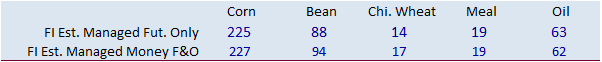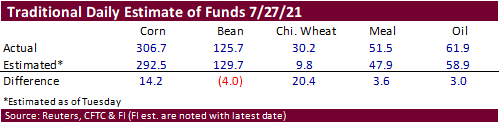 sold an estimated net 11,000 soybeans, sold 2,000 soybean meal and sold 8,000 soybean oil.