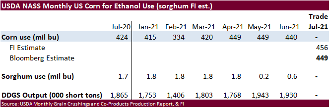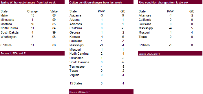 US crop conditions were unchanged for the G/E categories but were slightly lower on the state adjusted basis. We made a small downward adjustment to US production.