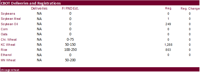 Russian wheat export prices were up $4/ton at the end of last week to $299/ton fob, according to IKAR. Reuters noted export prices are up 7 consecutive weeks for Russian fob. Note Egypt turned to Ukraine for 180,000 tons.