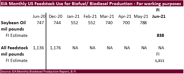We attached some key global soybean related S&D charts to the comment. It will be interesting to see what 2021-22 global vegetable oil industrial demand will end up later this year after a few key countries clawed back on their