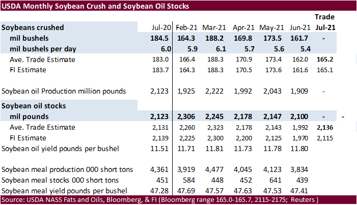 Stats Canada estimated the Canadian canola crop at a low 14.7 million tons, nearly 25 percent off 2020. USDA is at 16 million tons versus 19 MMT for 2020.