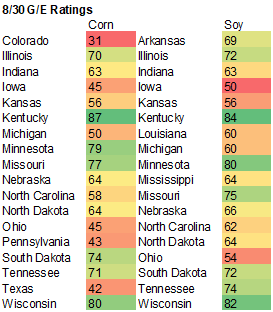 Louisiana Soy G/E down 28pts to 60% G/E on Hurricane Laura