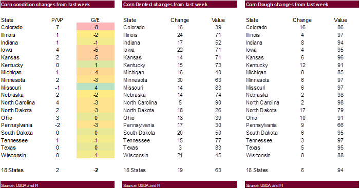 Corn 62% G/E down 2 pts (exp down 3pts), vs 64% last week, and 58% a year ago