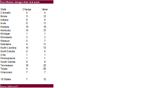 Corn mature 12% vs 5% last week, and 5% a year ago