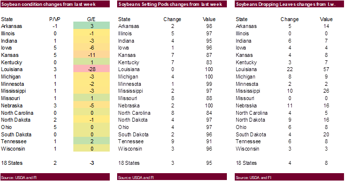 Soybeans 66% G/E down 3pts as expected, vs 69% last week, and 55% a year ago