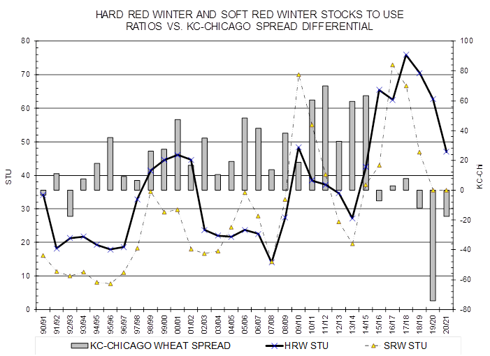 KC-Chicago wheat spread is expected to remain at traditional inverse levels this crop-year, due to a tighter HRW STU, unlike last year which was crushed due to a poor quality HRW wheat crop and abundant supplies.