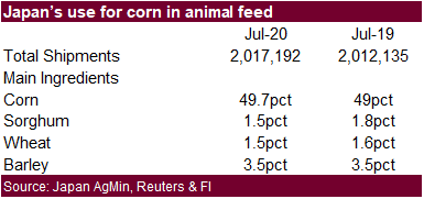 sales of 210,000 metric tons of corn received during the reporting period for delivery to China during the 2020/2021 marketing year