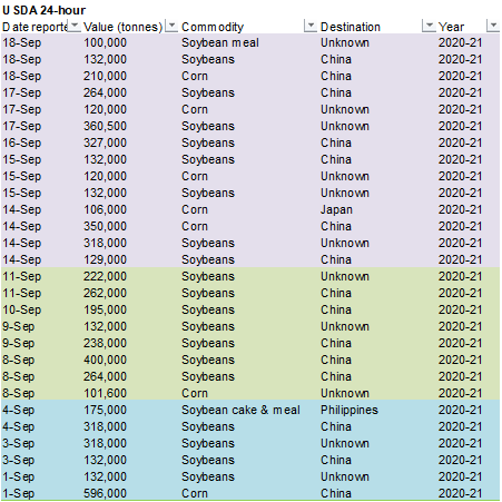 sales of 210,000 metric tons of corn received during the reporting period for delivery to China during the 2020/2021 marketing year