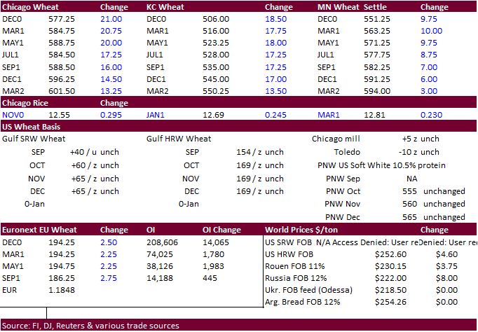 is at a six-month high with December up 3.25 cents today. US corn was higher following the soybean strength. For the week the nearby contract was up 2.7%.