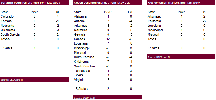 COTTON – 33 PCT CONDITION GOOD/EXCELLENT VS 33 PCT WK AGO (64 PCT YR AGO)