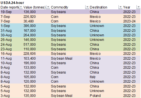exporters reported sales of 136,000 metric tons of soybeans for delivery to China during the 2022/2023 marketing year.
