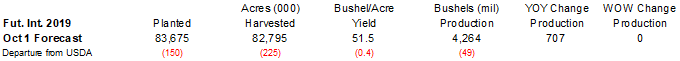 corn harvest progress was reported at 8 complete from 5 percent previous week, 6 year ago and compares to 10 percent average. The trade was looking for 11 percent. 95 percent of the crop was dented and 59 percent mature (49 average).