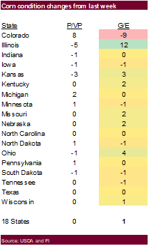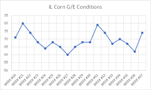 and IL was at 11%. 57% of the US corn crop was mature, 10 points above average.