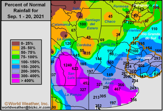 Argentina’s soybean crush fell 7% from July to 3.57 million tons but up 8% from August 2020. Jan-Aug crush is 29.5 million tons.