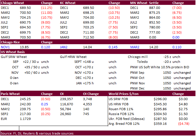 Chicago wheat is seen in a $6.50‐$7.80 range