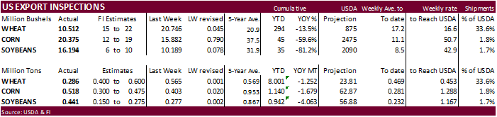 Corn was lower overnight but rebounded from several factors, including a nearly 30 percent increase in US corn inspections. Disappointing US hog inventories did not factor into today’s action for corn futures, but sure did the