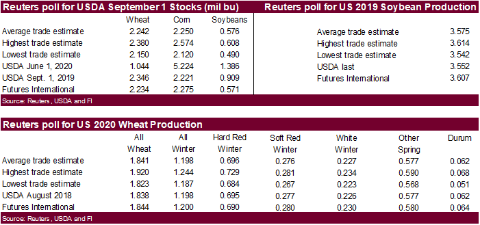 estimates for 2019-20 ending stocks for September 1 don’t deviate much from USDA