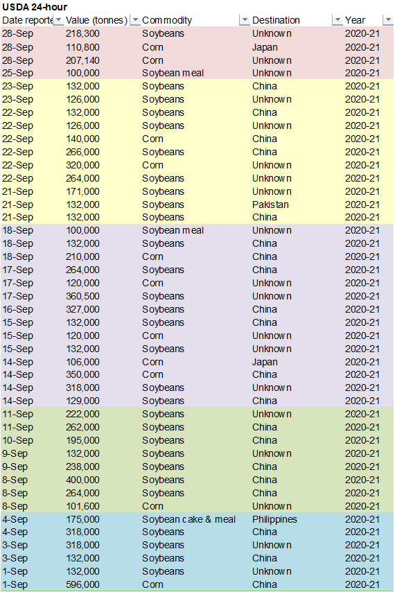 1.50 cents higher and March was up 2.25 cents. USDA posted corn sales to Japan and unknown destinations. Producers were busy selling soybeans but not so much for corn. China imported 5.59MMT of corn and 64.730 million tons of soybeans during Jan and Aug.