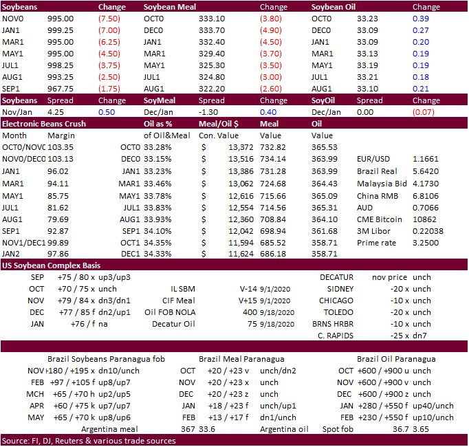 Aug 2019-20 soy carry 0.575 (ave. est. 1 bushel above USDA)