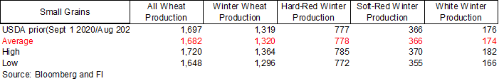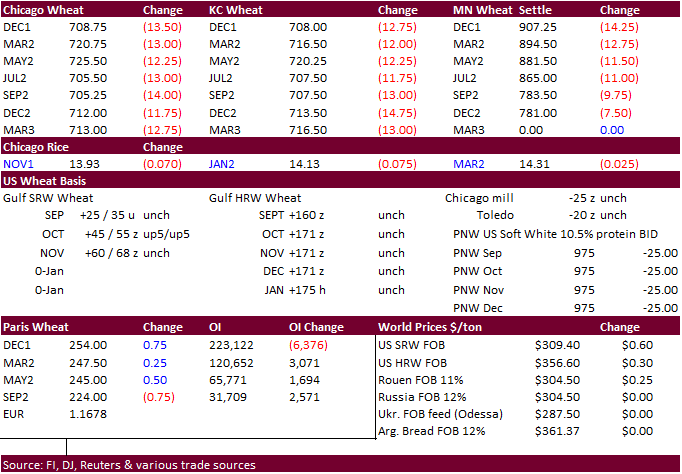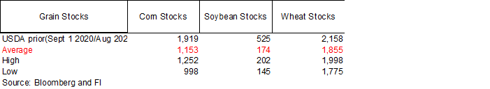 Algeria started buying wheat, optional origin, at prices around $364/ton c&f for November 1-15 and November 16-30 shipment. Volume were rumored at around 500,000 tons. Results will likely be out September 29.