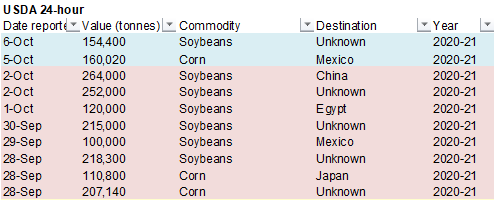 announced sales of 154,400 tons of soybeans to unknown for 2020-21 delivery.