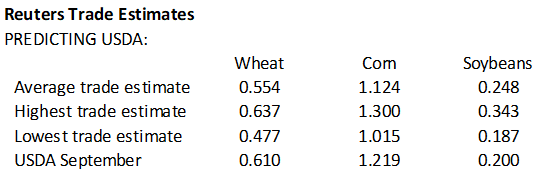 For now, we are looking at soybeans 3-5 lower, corn 1-3 lower and wheat 3-6 lower.