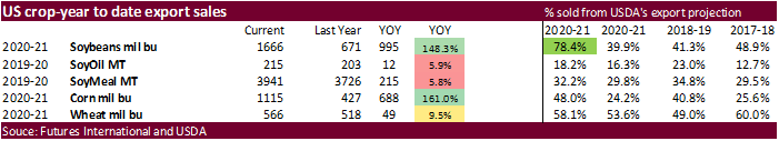 Net sales of 2,225,500 MT for 2020/2021 were down 14 percent from the previous week and 18 percent from the prior 4-week average. Increases primarily for China (1,222,000 MT, including 395,000 MT switched from unknown destinations and decreases of 6,600 MT),