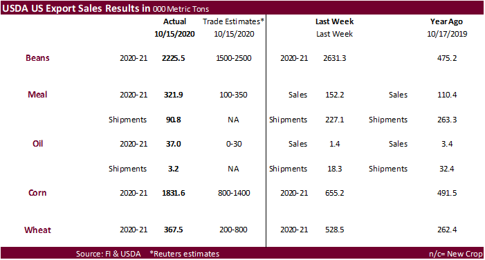 summary is based on reports from exporters for the period October 9-15, 2020.