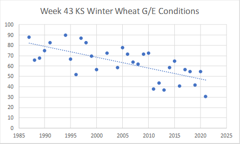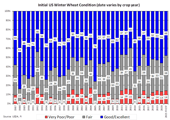 Hard Red Winter Wheat bottom line is one of partial improvement of wheat establishment in the high Plains region. More precipitation will be needed, but not likely to occur with warmer than usual temperatures expected late next week through the first full