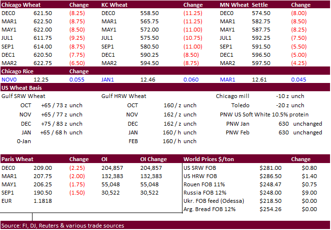 Pacific Northwest will receive some rain and mountain snow Friday into the weekend resulting in a short term boost in topsoil moisture that will favor improved winter wheat planting in dryland areas - U.S.