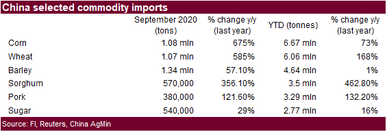 corn imports were 6.7 million tons during the first 9 months of 2020. That’s the highest in 15 years. September corn imports were 1.08 million tons.