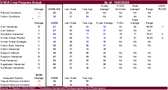 Brazil that saw too much rain recently may require replanting. Argentina will see rain today and Wednesday, then again Saturday (erratic showers).