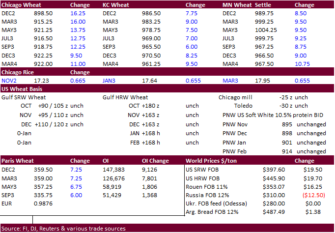 after Chicago wheat rebounded to close higher. Shipping along the Ukraine grain corridor is expected to slow over the next week. The UN, Turkey and Ukraine agreed not to plan any movement of vessels on Wednesday, as part of the safe passage deal. Negotiations