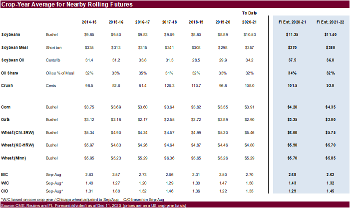 raised our trading ranges for wheat and soybean oil. In the table above we upward revised our crop-year averages for 2020-21 for all the major commodities.