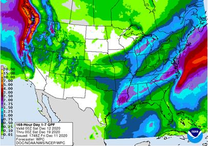 active weather pattern in the Dec 16-25 period will bring another storm to the eastern Midwest, Delta and middle and northern Atlantic Coast States during the middle to latter part of next week followed by a couple of other storm systems moving through the