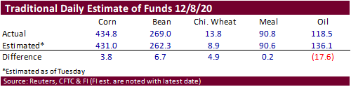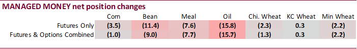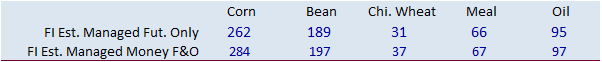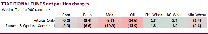 money futures and options for wheat extended their short position as of last Tuesday from 4,400 to 5,700 contracts. Funds were much more short in traditional fund soybean oil position than expected.