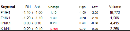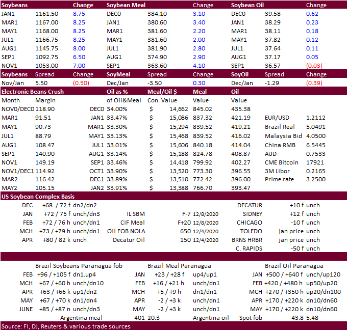 The soybean complex was mixed early this morning on lack of direction and corn lower but as selling dried, prices rallied. Sharply higher wheat lent support to soybeans and corn.